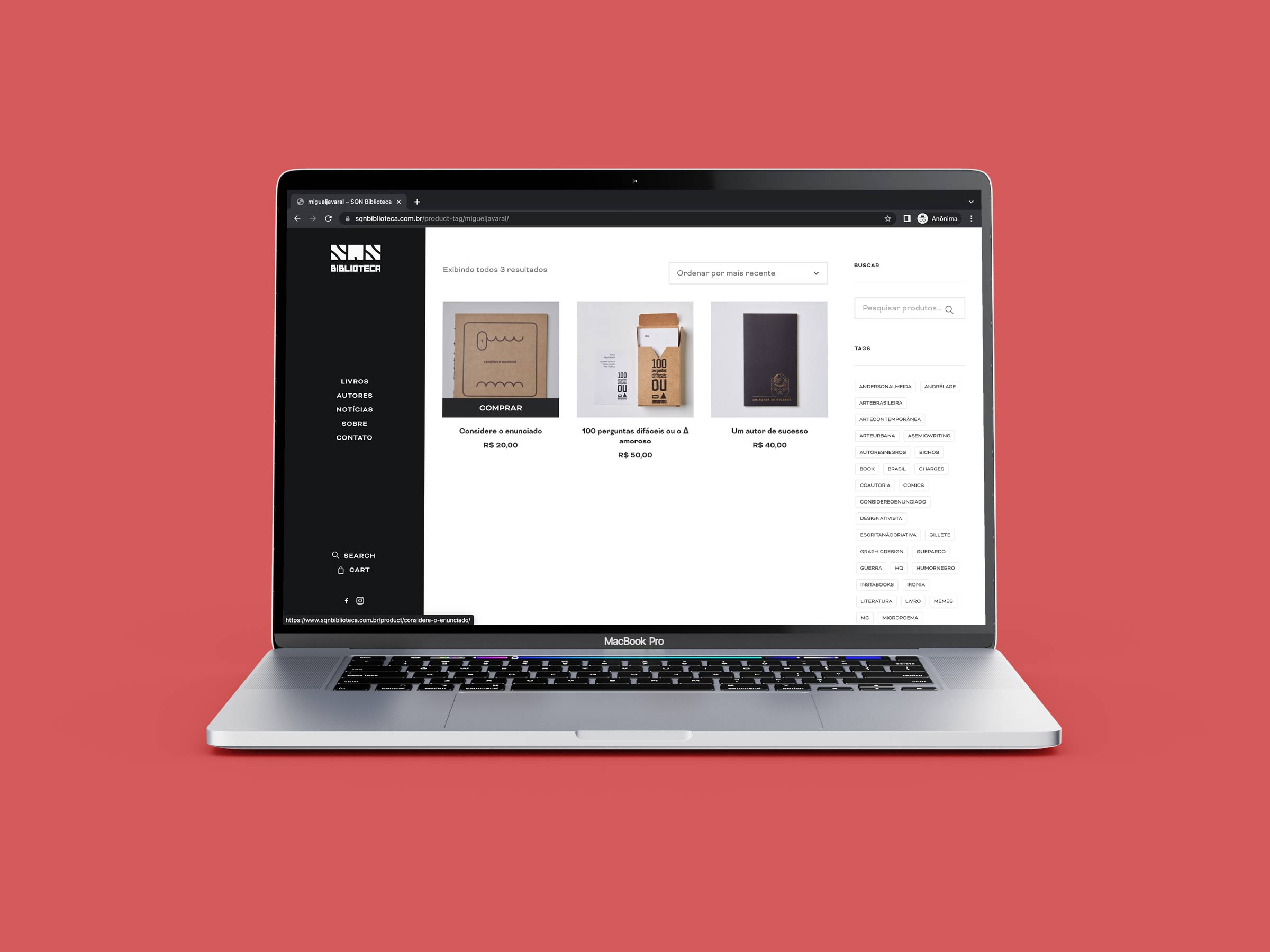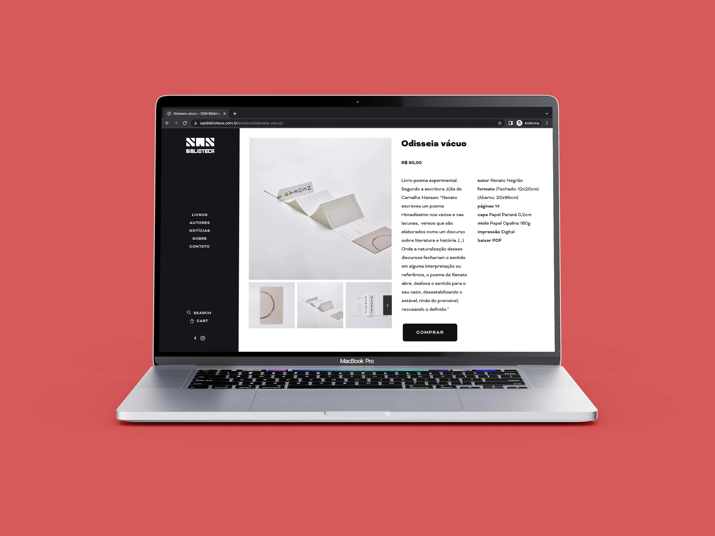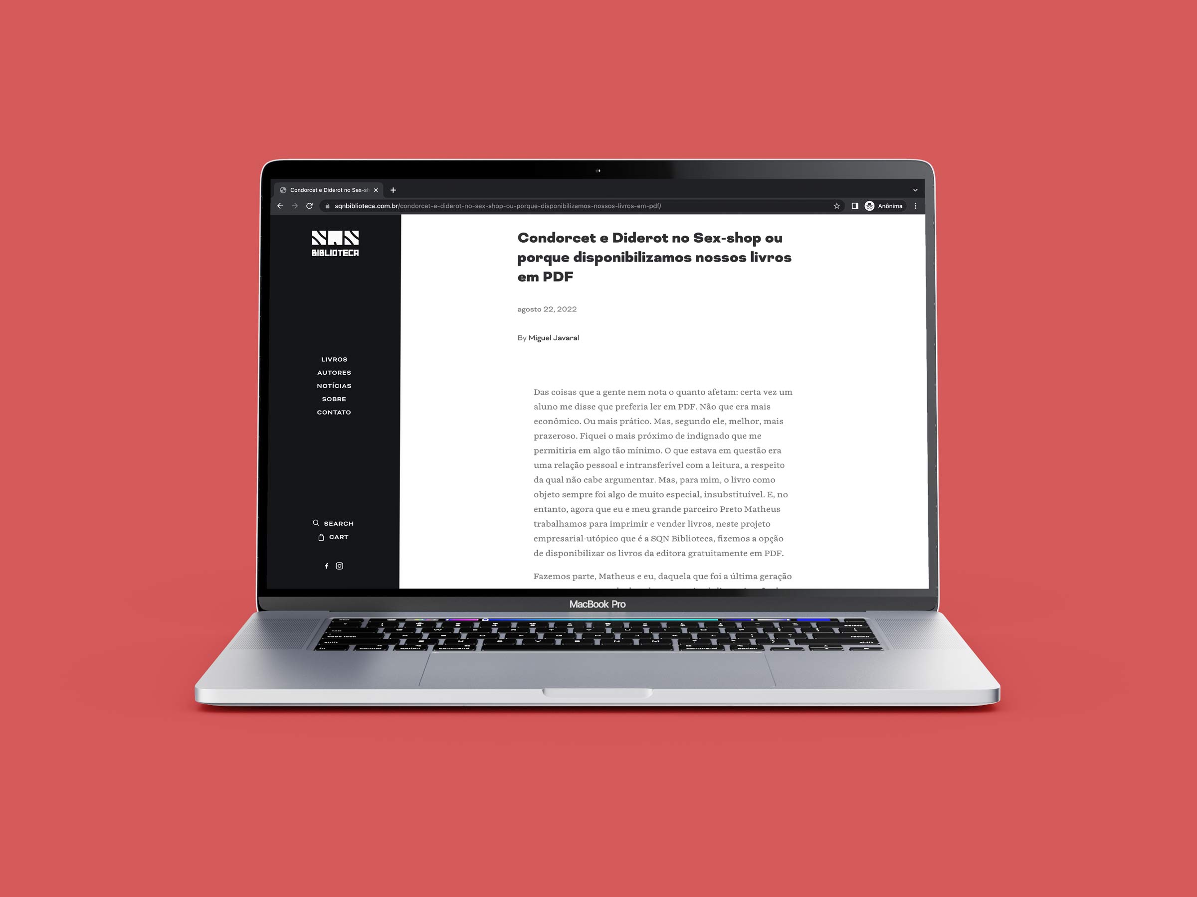 Design de site/loja virtual de editora focada na confluência entre livros-objeto, escrita experimental e cultura urbana, dirigida pelos artistas Miguel Javaral e Preto Matheus. Em consonância com o trabalho de Matheus, responsável pela visualidade das publicações da SQN, busquei enfatizar o alto contraste branco/preto e a interpenetração de minimalismo e cultura urbana.