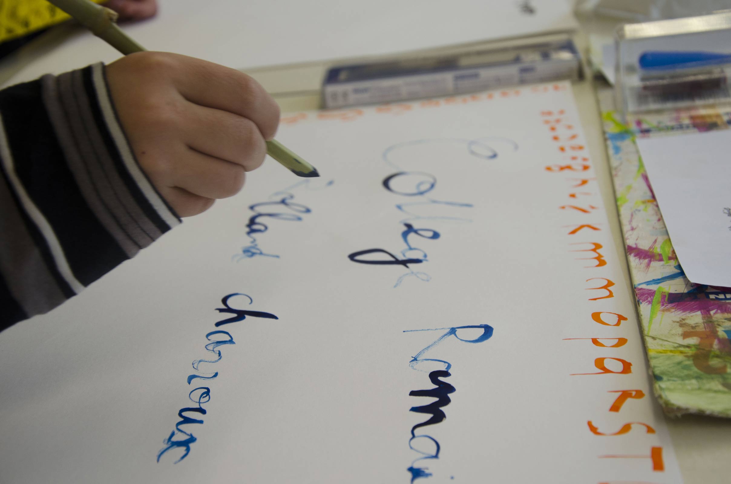 “Domesticando o indomesticável” é uma residência artística e pedagógica que questiona a fixação do gesto da escrita na tipografia. Realizada no âmbito do programa Création en Cours, do Ministério da Educação francês, a residência envolveu oficinas destinadas a alunos da École Primaire Publique, de Saint Romain, e do Collège Romain Rolland, de Charroux. No decorrer delas, as crianças criaram, sob minha coordenação, uma fonte tipográfica digital a partir de sua própria escrita manual. Uma exposição encerrou o ciclo de oficinas.